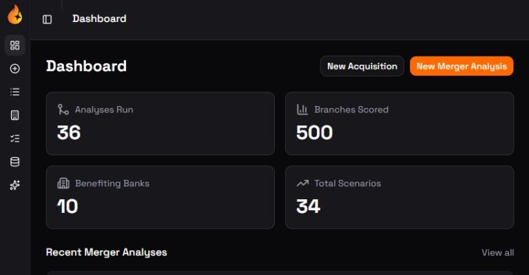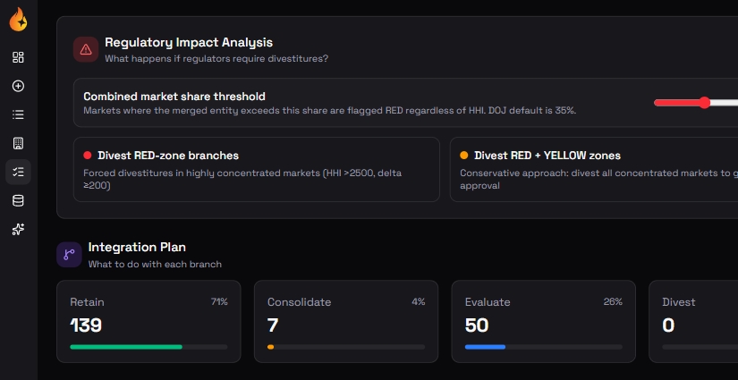 MergerIQ transforms competitive disruption into a precise, actionable plan — giving financial institutions the intelligence to move first, move fast, and win the market.